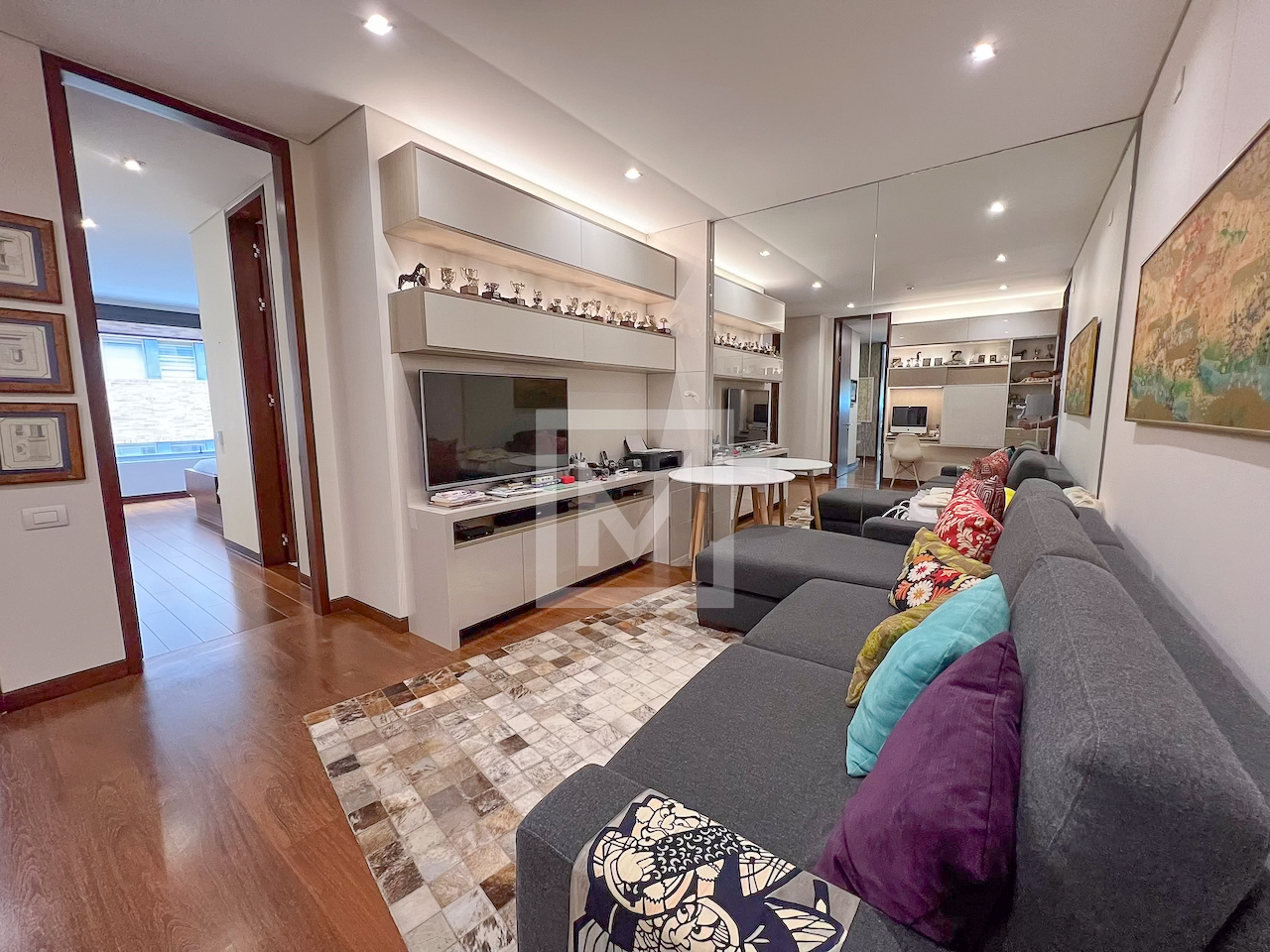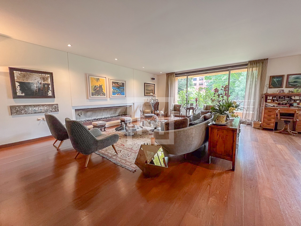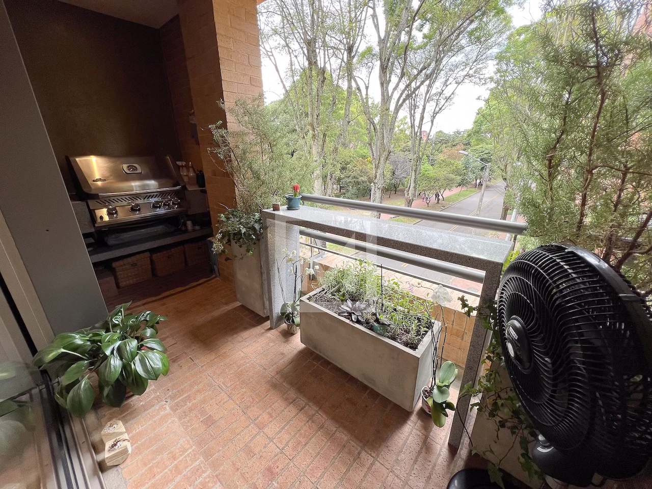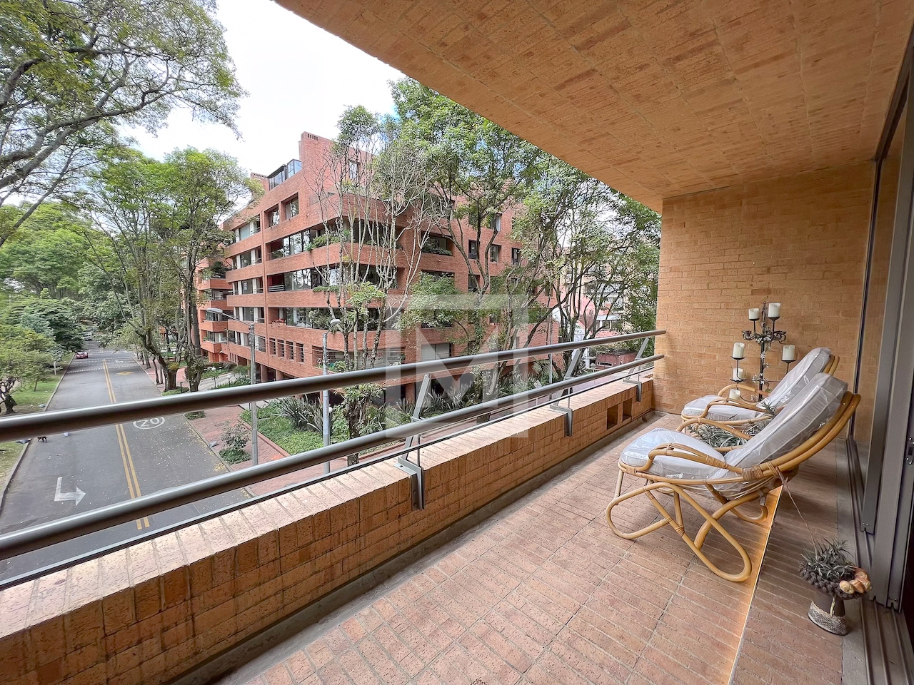 Exterior 10-year-old building overlooking Parque el Virrey. It has a power plant, boiler, community room, gym, 24 hour security and visitor parking.